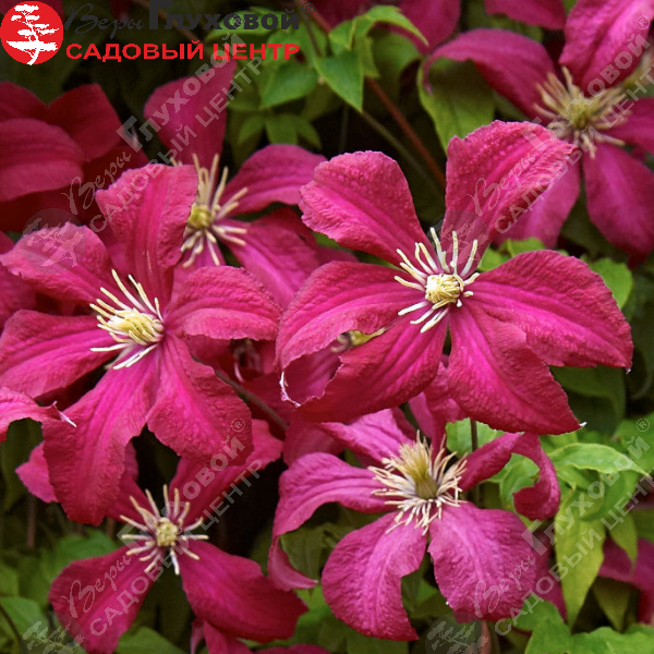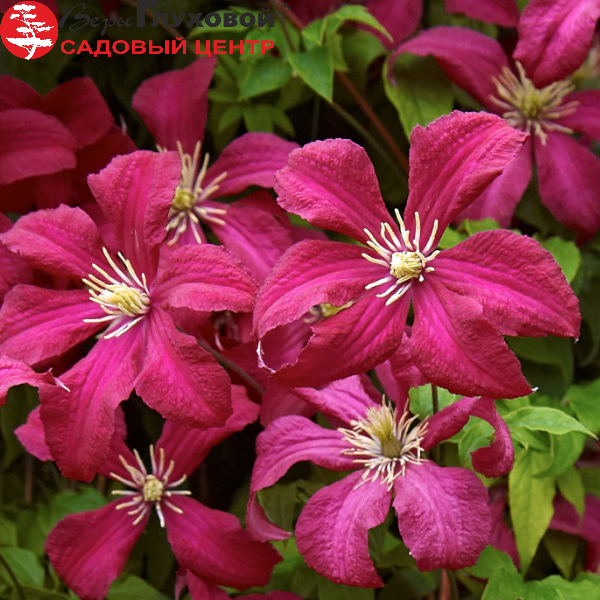 Цветки пурпурно-винного оттенка, не махровые, с 4-6 лепестками, составляют в диаметре около 10 см. Клематис Мадам Джулия Корревон относится к среднему сроку цветения. Он образует множественные бутоны в конце июня – начале июля, к этому времени большинство сортов клематисов уже отцветают. В августе цветение идет на спад, а осенью лиана продолжает раскрывать одиночные бутоны. III группа обрезки.