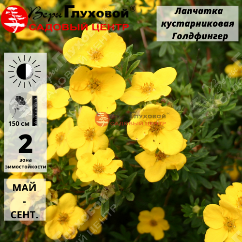 • Красочные желтые цветки обильно покрывают «Голдфингер» в период цветения.