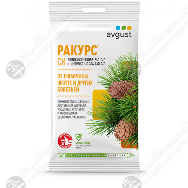 Средство от болезней «Ракурс» предназначено для профилактической и лечебной обработки растений в период вегетации. Используется для хвойных и лиственных пород деревьев и травянистых многолетников. Эффективно против снежного и обыкновенного шютте, ржавчины и мучнистой росы. Из препарата готовят раствор для опрыскивания.