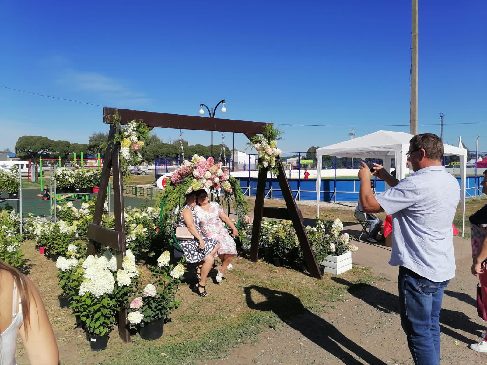 На наших цветочных качелях, хочется сфотографироваться каждому гостю